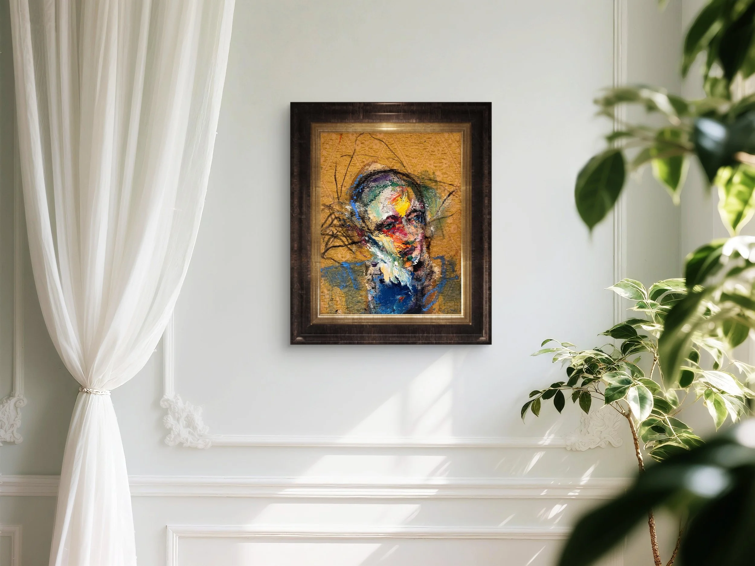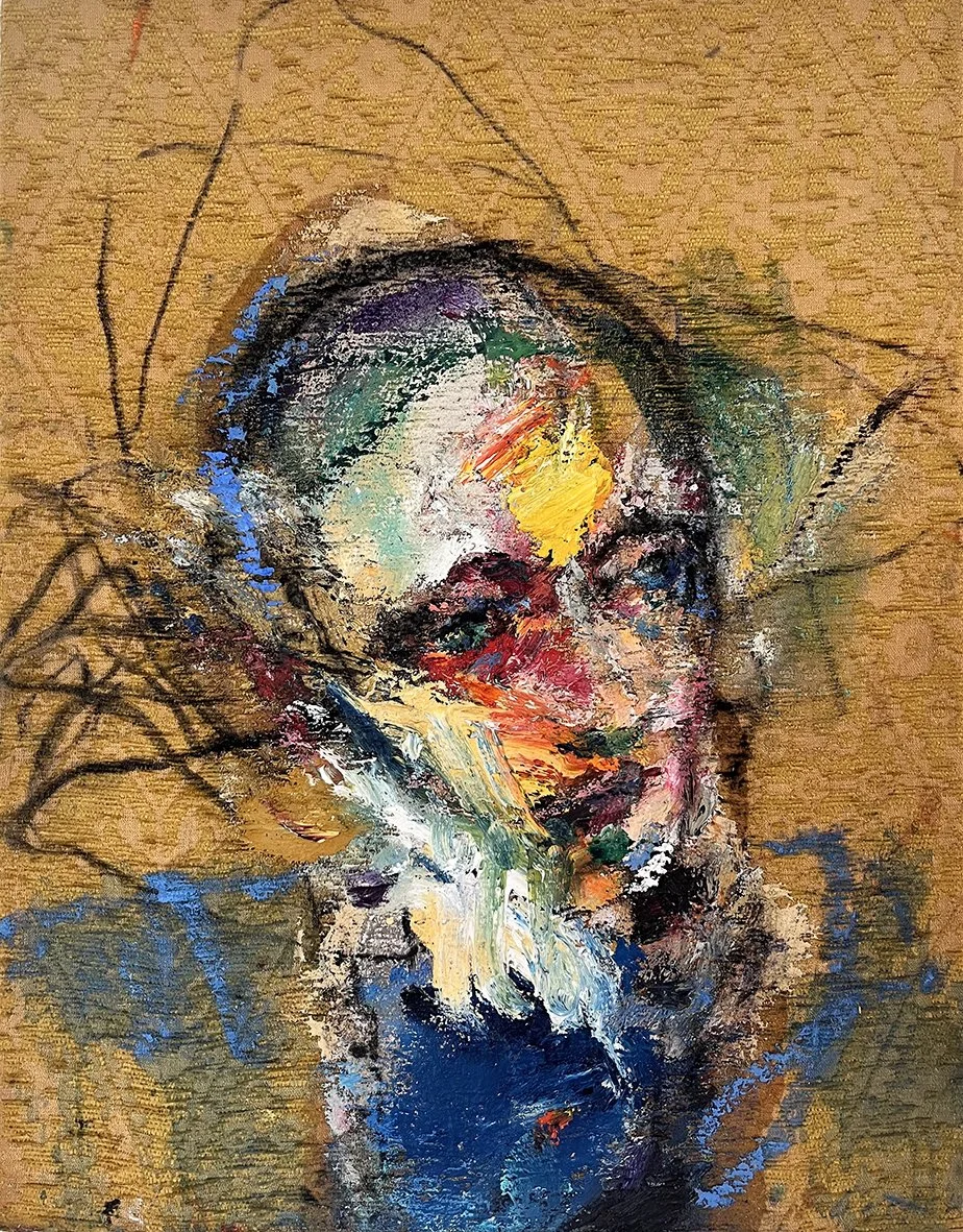 2026 . 45 × 35cm . oil and charcoal on stretched damask . not framed